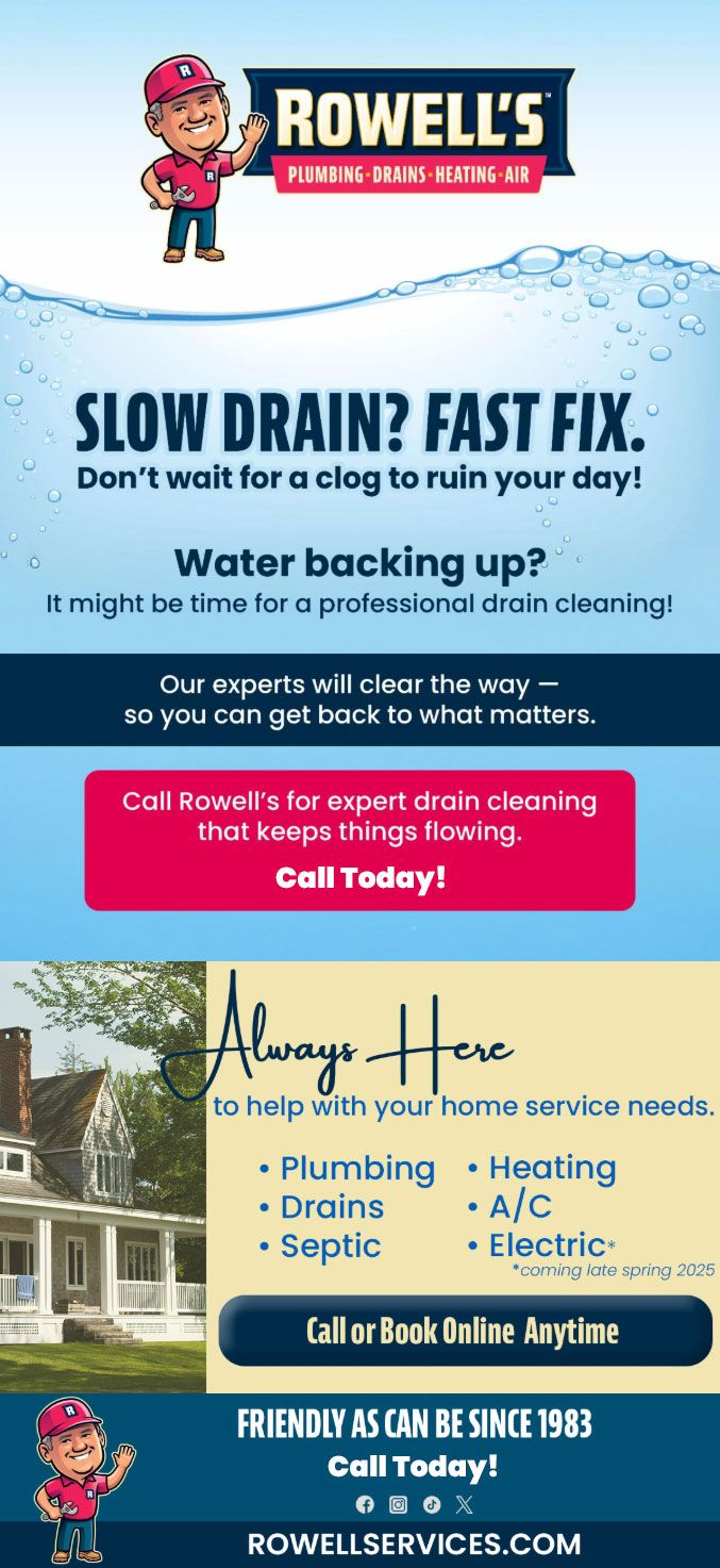 Call Rowell's for expert drain cleaning that keeps things flowing.